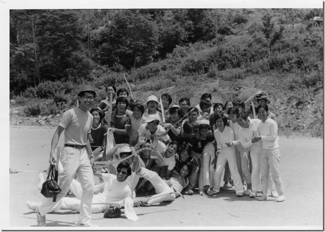 下の写真(2枚)は自分の同期の高見(旧姓 大前)氏から提供されたものです。自分たちが1年時に9~11代が写っており、(記憶の範囲ですが)夏の合宿での青春の一コマです。