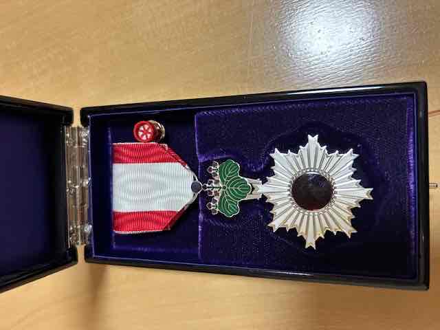 - 振興に寄与したとのことで東京で授与式に臨み、ご夫妻で天皇陛下に拝謁されました。